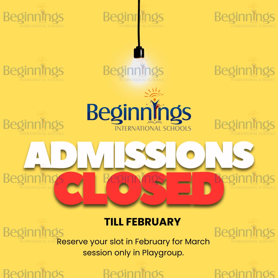 Admissions Closed Till February – Reserve Your Slot Now for March Session | Beginnings International Schools